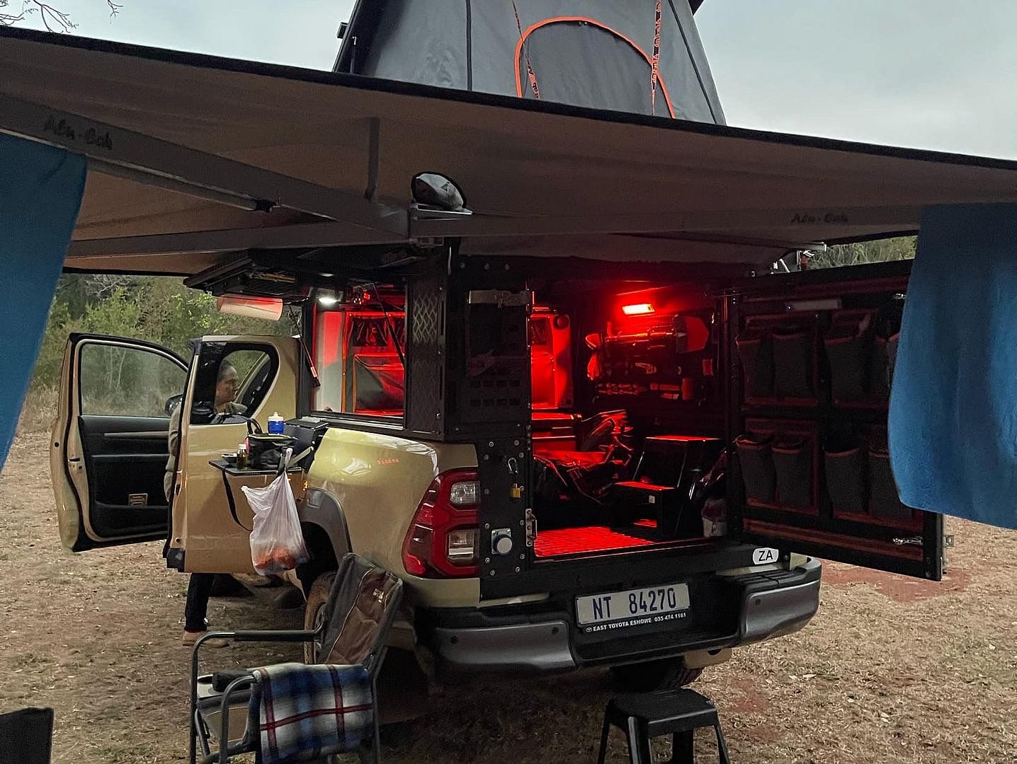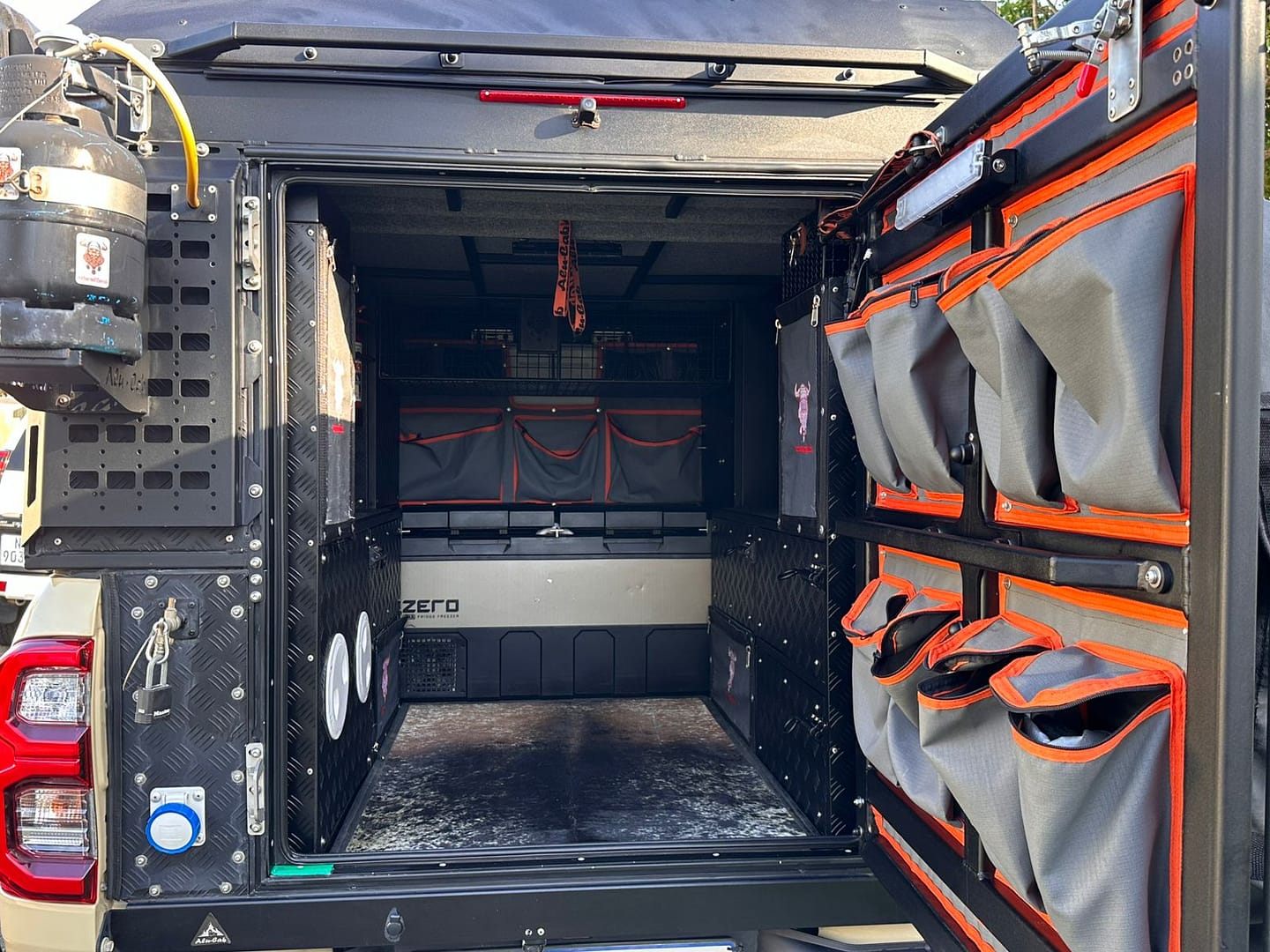 Canopy: Alu-Cab canopy camper with one-of-a-kind interior (stainless steel, aluminium, and canvas)