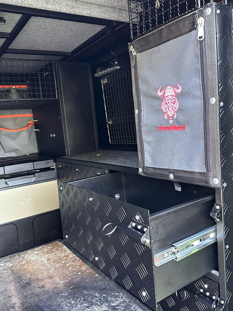 Interior Upgrades: Melville & Moon seat covers, custom Nguni carpet, and bin rubberised