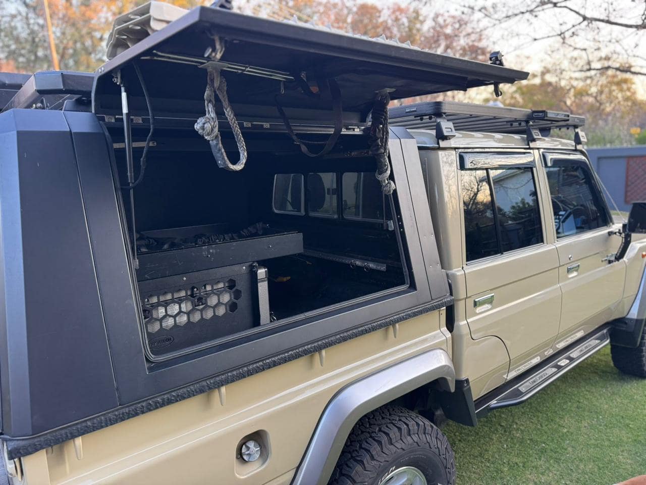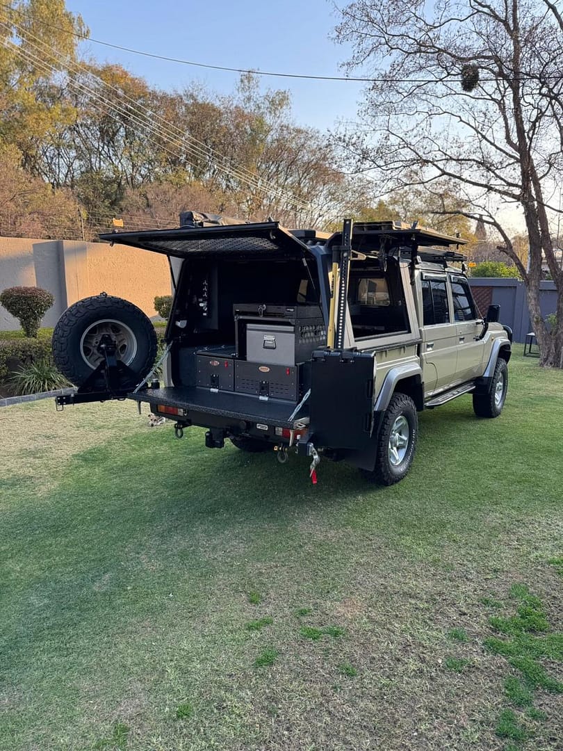 - Desert armour dbl jerry can swing bracket incl. jerry cans